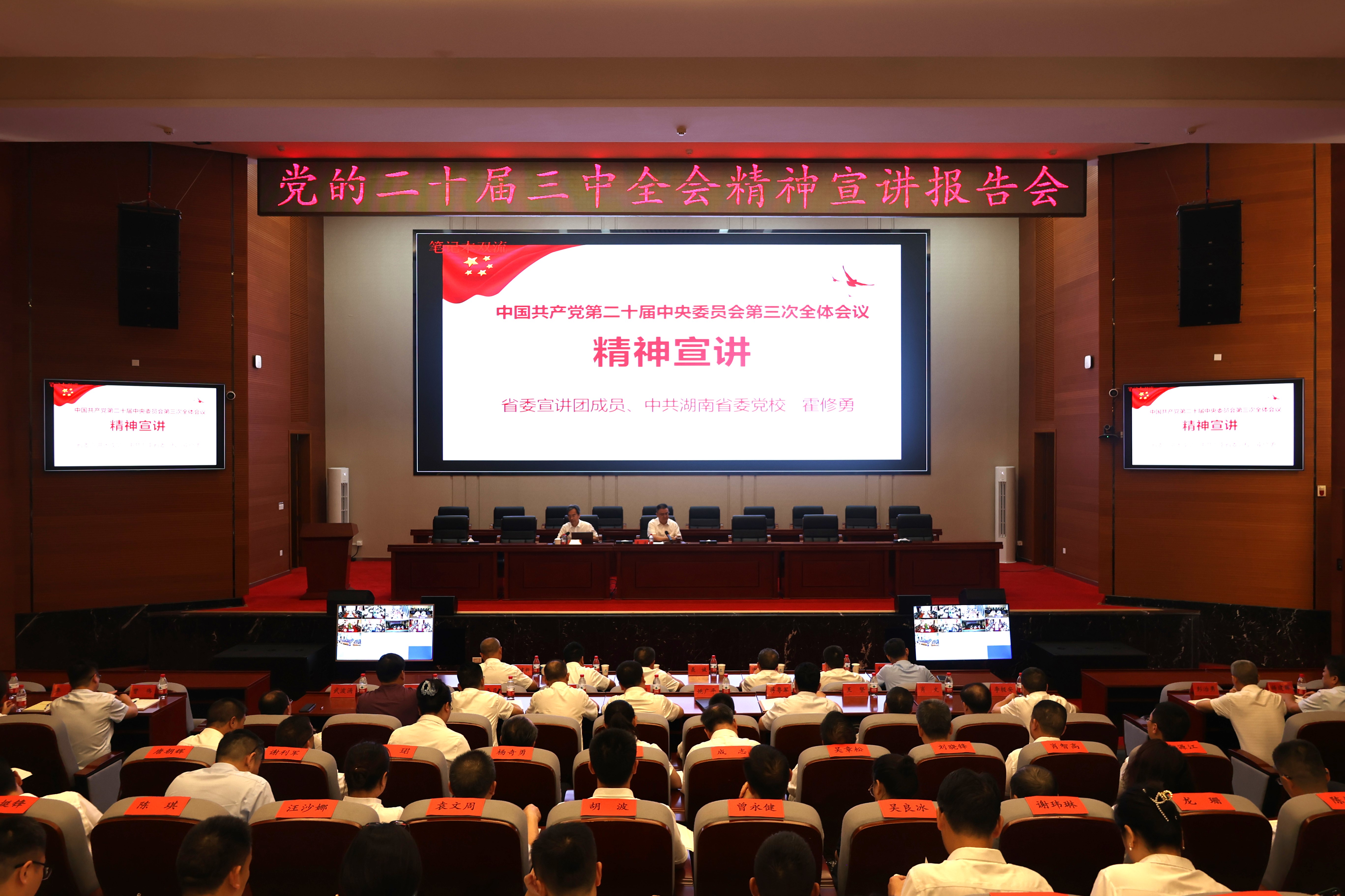 根據(jù)省委統(tǒng)一部署,8月12日下午,學習貫徹黨的二十屆三中全會精神宣講報告會在集團舉行。省委宣講團成員、中共湖南省委黨校、湖南行政學院教育長、教授霍修勇作宣講報告。集團黨委副書記、副董事長、總經(jīng)理(主持黨委工作,主持董事會工作)聶誠主持會議。
